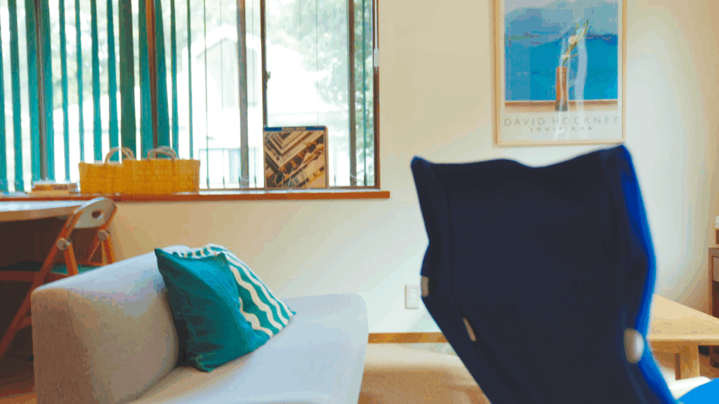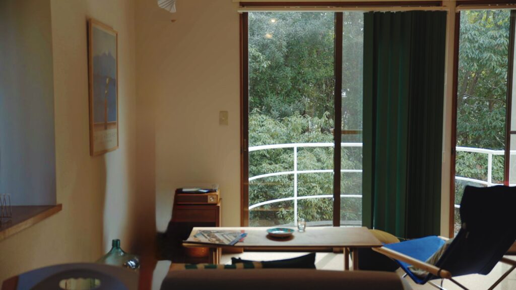 リビングルームを中心にした室内は、寛ぎの空間。