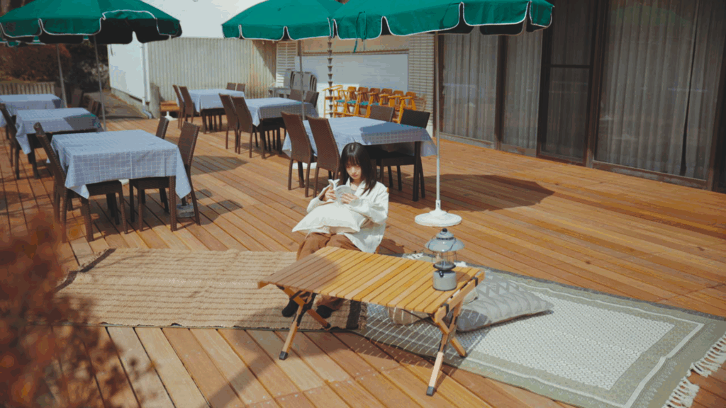 施設には新たにデッキ空間を整備。昼は森の気配を感じながらくつろぎ、夜は照明と焚火がやさしく空間を包みます。写真を撮りたくなる象徴的な場所で、滞在のメインビジュアルとなるスポットです。※焚火は当面の間、土休日の18時~20時まで(天候などで予告なく中止や変更になる場合があります。)